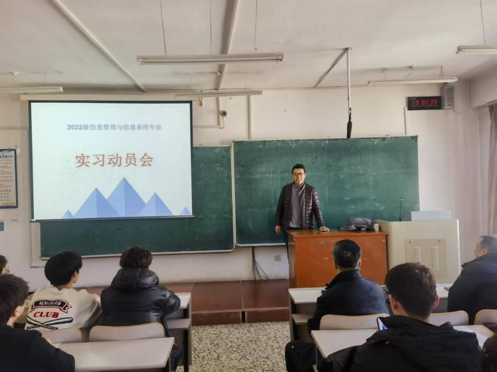 2025年3月3日上午10:00,信息管理与信息系统专业在汇文楼566召开了2022级学生专业实习动员会,专业实习带队老师和全体2022级同学参加了会议。专业负责人刘甲学强调了实习的目的与意义,强调实习是理论与实践结合的关键环节,旨在提升学生专业技能、职业素养及社会适应能力。明确实习目标包括深化专业认知、积累行业经验、明确职业规划等。