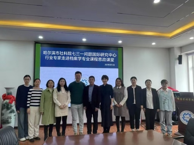 为促进学院本科实习基地与产教融合研究生工作站建设,扎实推进学校“本研一体化”建设,深化本硕课程思政实践教学,作为学院贯彻学校“学风建设年”的系列活动,华体会官方网页版档案学专业与哈尔滨市社会科学院教学与科研合作签约仪式暨档案学专业思政课堂启动会于2025年3月12日在汇文楼学院会议室举行。哈尔滨市社会科学院副院长周立伟、哈尔滨市社会科学院七三一问题国际研究中心主任宫文婧、中心研究员鲁丹、王雨嫣、岳蓉媛,我院副院长周丽霞、任越,档案学专业全体教师及2023级档案学专业本科生、2024级档案学专业硕士和文献信息学博士研究生参加本次活动。