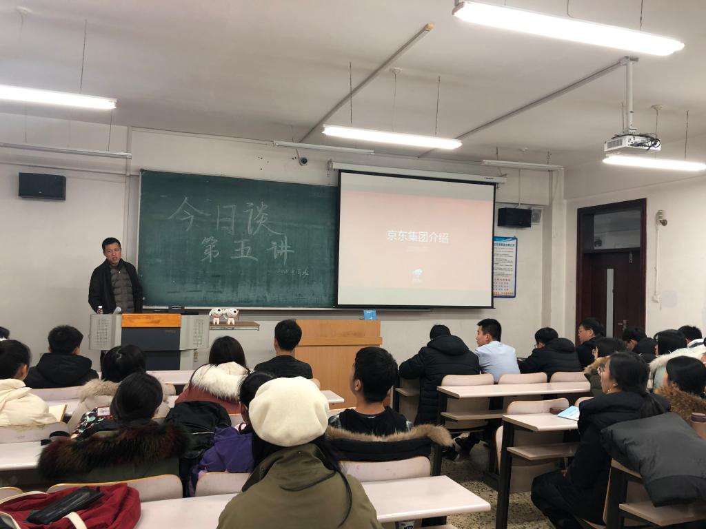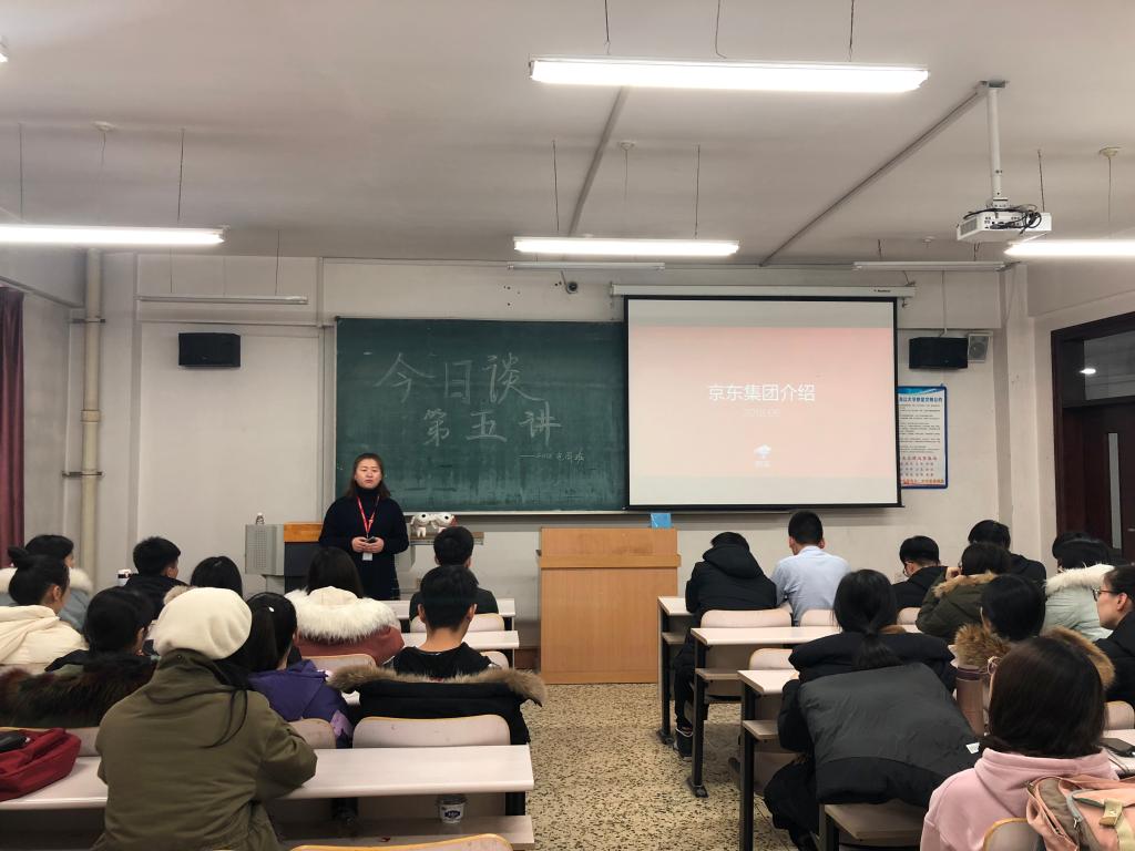 为加强信管学子对电子商务市场现状的了解,拓展对企业内部的发展战略的认识,华体会官方网页版于11月29日下午3:30在汇文楼255室举行“今日谈”系列活动第五讲,本次活动邀请到京东物流集团HRBP经理孙迎春女士作为主讲人,华体会官方网页版党总支副书记、副院长王法山老师,团委副书记王硕老师,以及学院2018级电子商务专业学生共同参加本次活动。