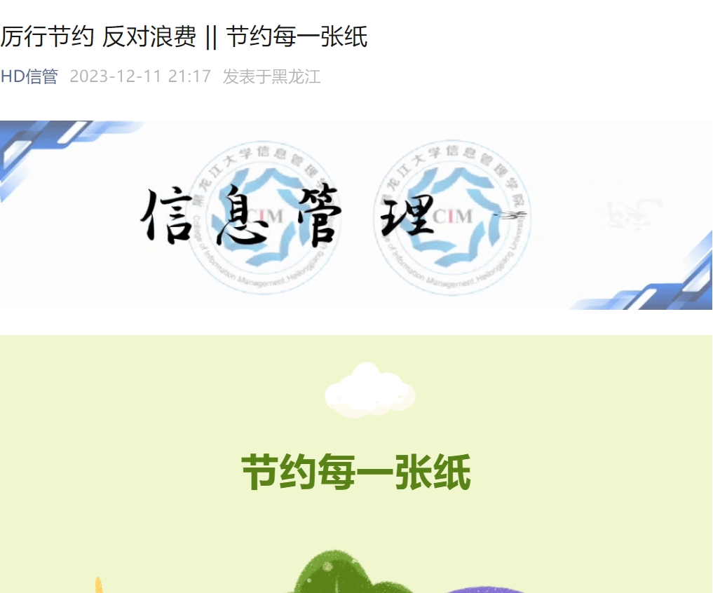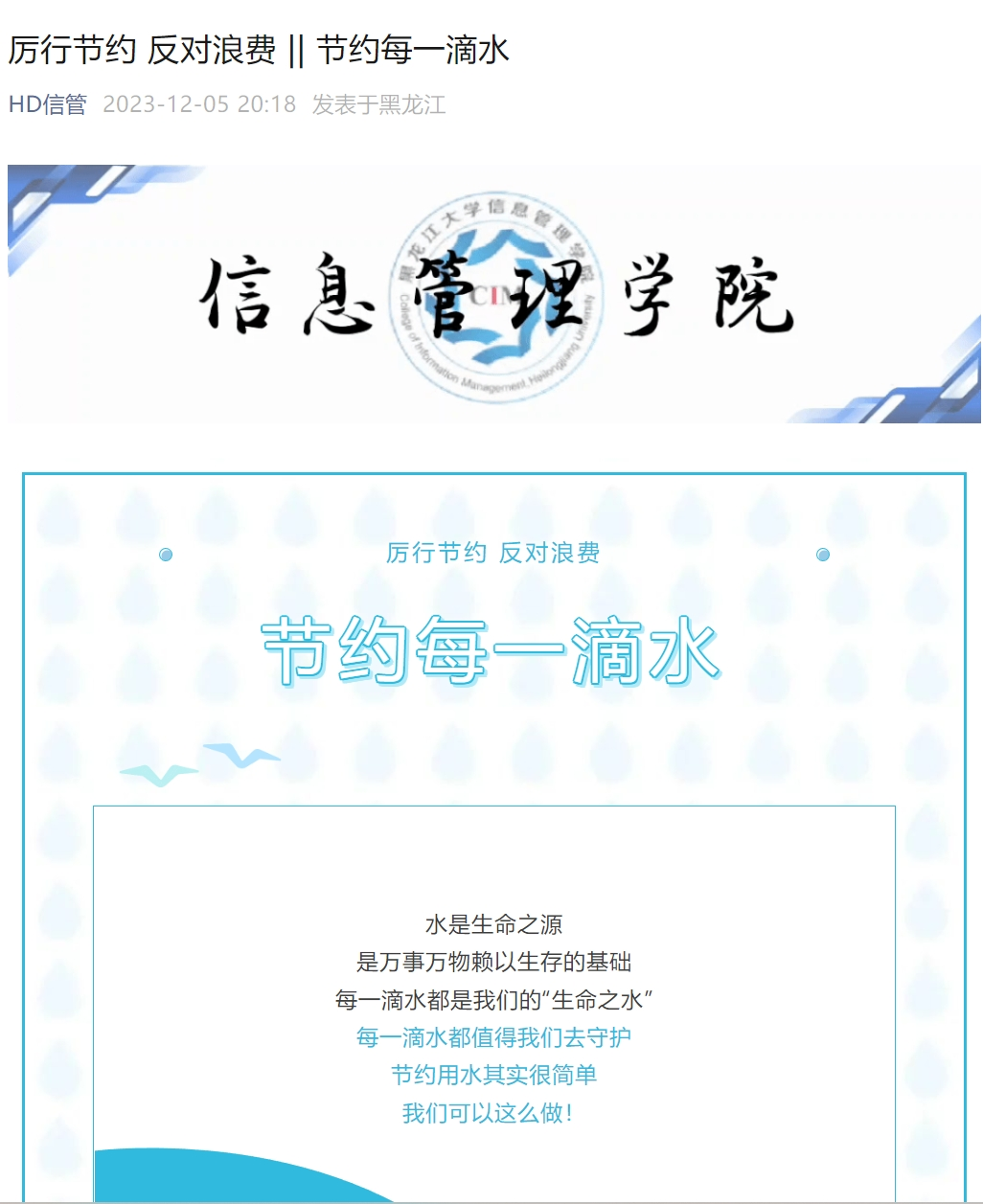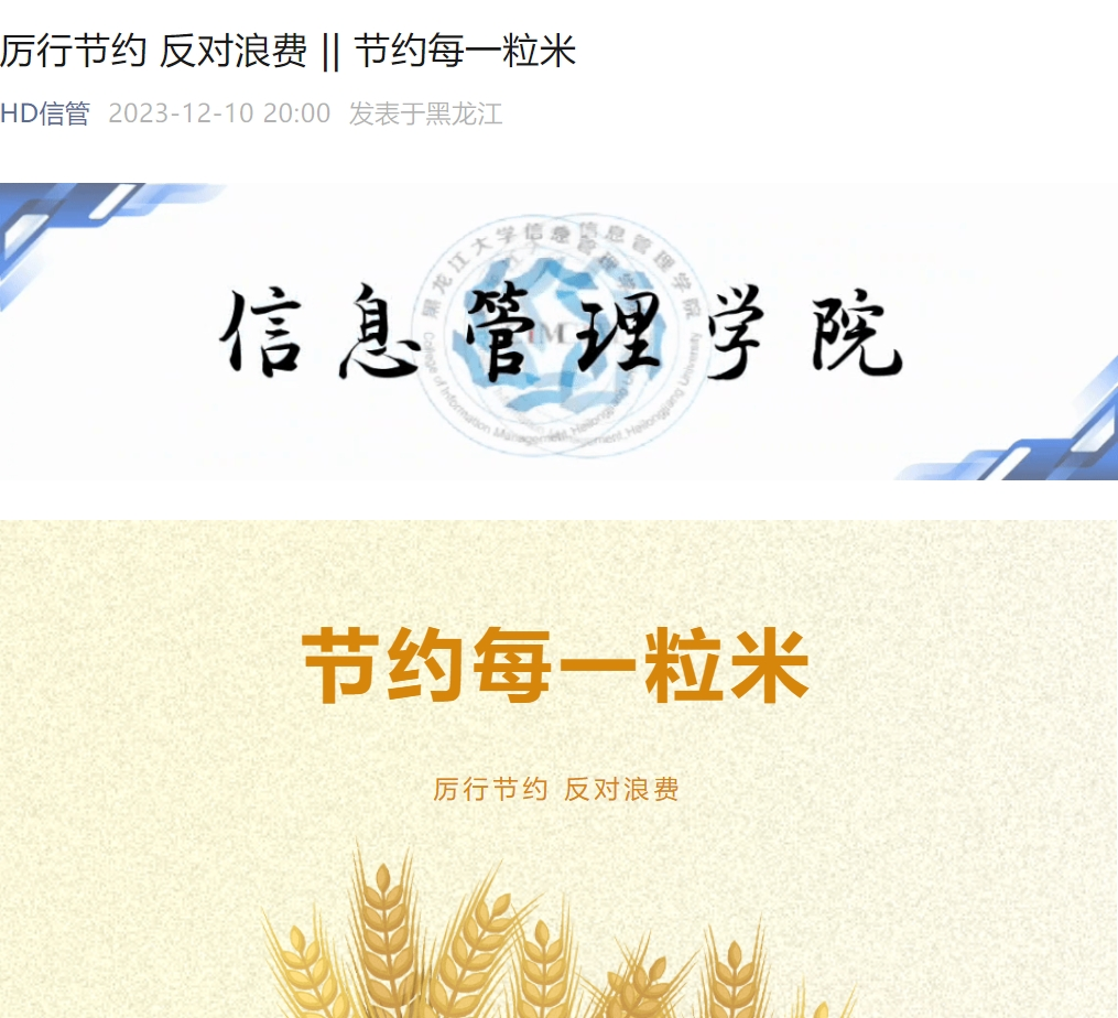 华体会官方网页版高度重视学生工作部指示,于2023年12月5日至12月12日发表了主题为“节约每一滴水”、“节约每一度电”、“节约每一张纸”、“节约每一粒米”、“节约每一分钱”的节俭行动倡议书。通过学院的积极号召,信管学子切实意识到了节俭的重要性且领悟了厉行节约的具体做法。本系列节俭行动倡议书充分调动全院学生加入到厉行节约的队伍之中,助力信管学子更好地培养节约意识。
