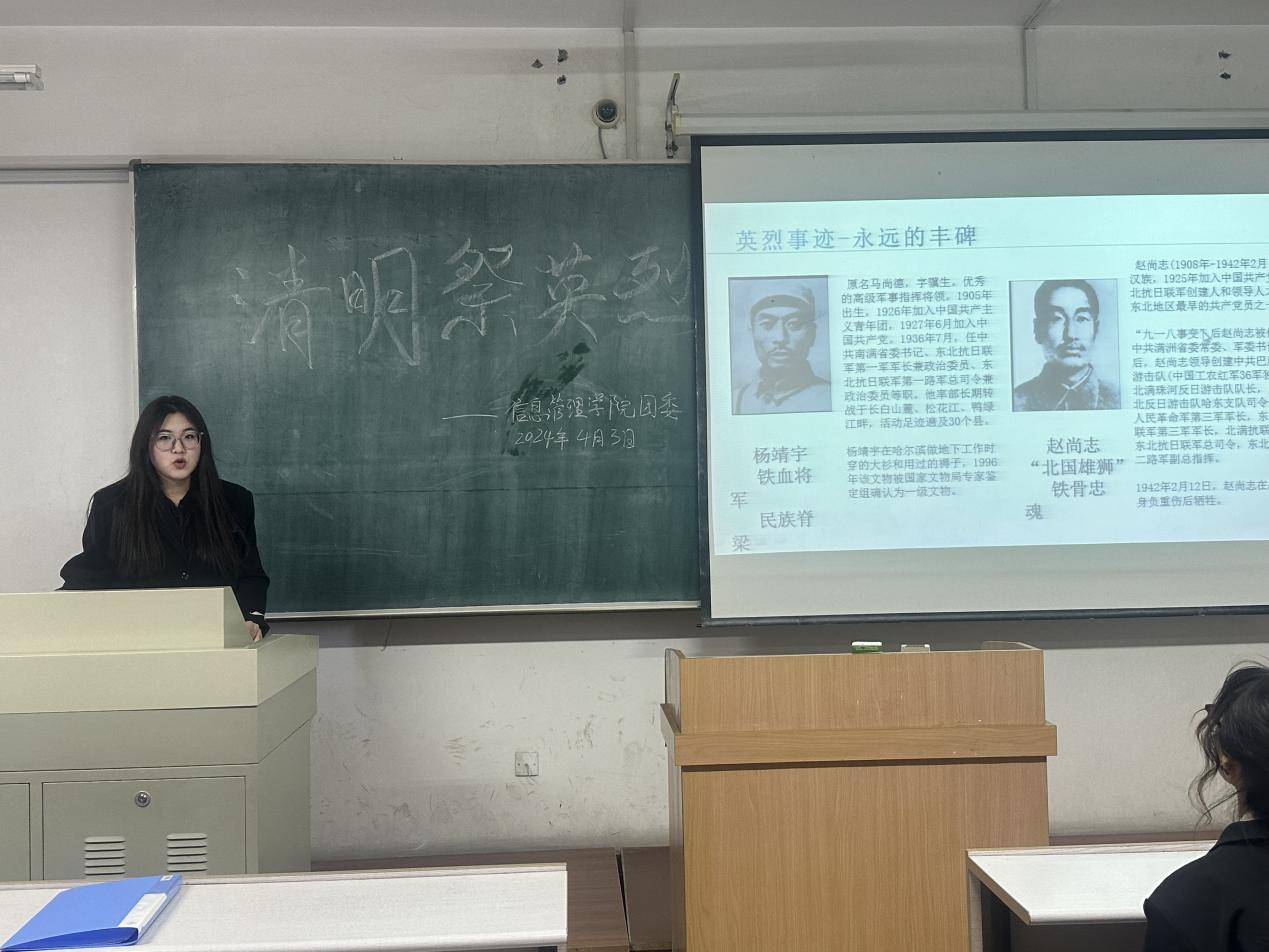 为引导广大团员和青年继承和弘扬老一辈革命家的优良传统,树立正确的世界观、人生观、价值观,厚植家国情怀,勇担时代使命。华体会官方网页版团委积极响应校团委号召,于4月3日下午1时30分在汇文楼353教室举办“清明祭英烈,共铸中华魂”清明节主题活动。华体会官方网页版团委学生组织部部长谭雨欣主持,学生团委副书记滕玉欣、部长团、干事以及2023级学生代表参加本次活动。