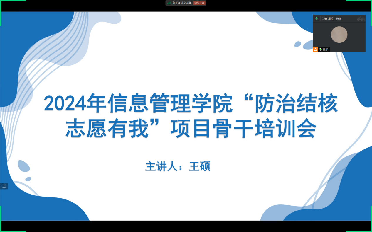 本次培训会由学院团委副书记、2022级思想政治辅导员王硕老师主讲,华体会官方网页版青年志愿者协会结核病防治项目骨干参加此次培训。培训会伊始,王硕老师强调了结核病作为一种常见的传染病,对社会和个人的健康构成了严重威胁。因此,加强结核病防治工作,增强公众的防病意识,是每一位志愿者义不容辞的责任。