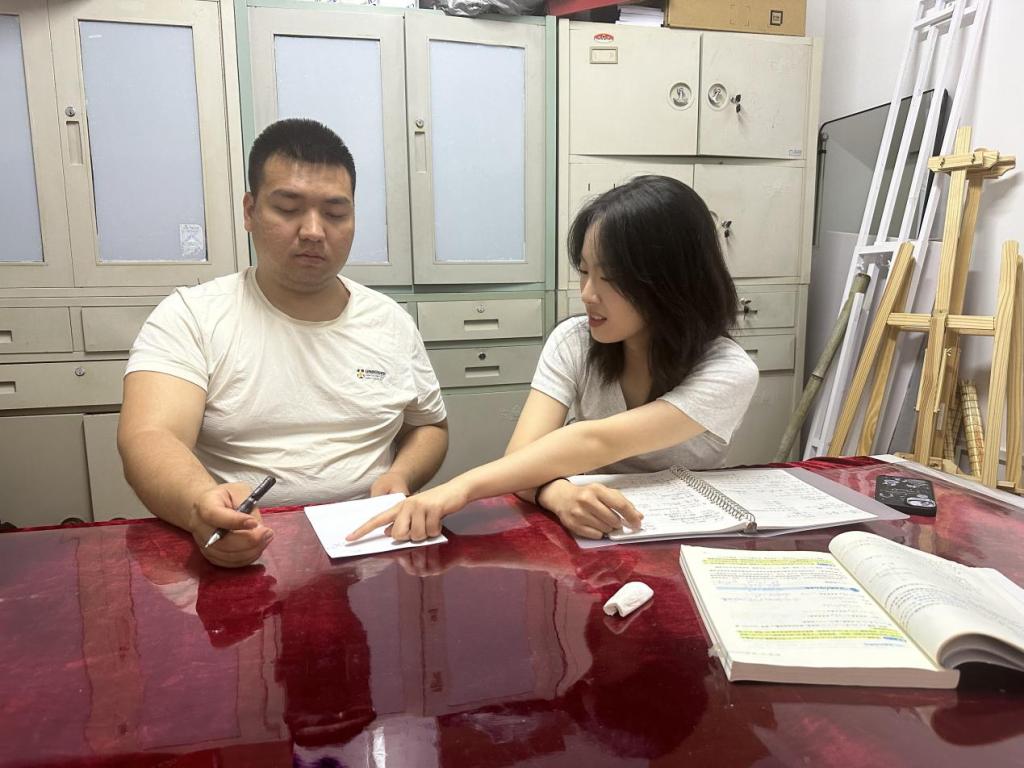 过程中,李金菊分享了自己的手写笔记,并结合教材详细讲解有关导数的知识点,解答那扎尔江的疑问。两位同学还共同探讨了有效的学习习惯和学习方法,李金菊认为高数学习不仅要在课堂上跟住老师的思路,课后也应及时巩固复习,强调了课堂笔记的重要性。针对那扎尔江记忆公式效率不佳的问题,整理出公式纸条,方便随时复习。
