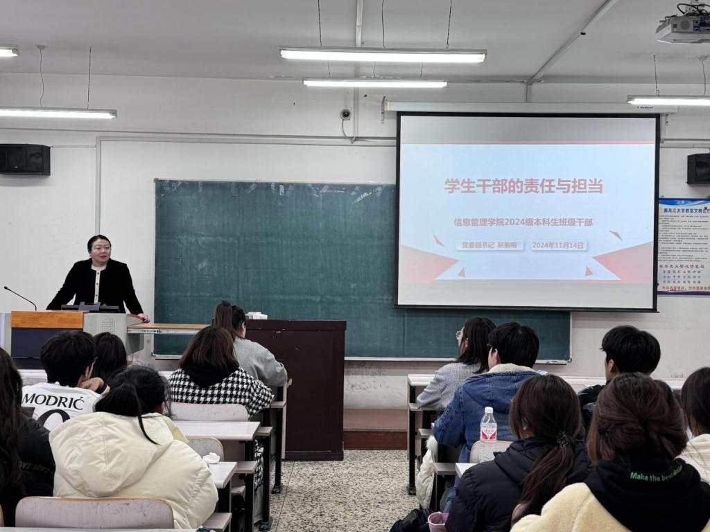 为进一步提升学生干部的工作质量与效率,指导学生干部充分发挥模范带头作用,全面提升综合素养及管理能力。华体会官方网页版于11月12日至14日召开2024级学生干部素质能力提升培训会。华体会官方网页版党委副书记赵丽明、2024级辅导员郭曦萌主讲,学院2024级全体学生干部参加此次培训。