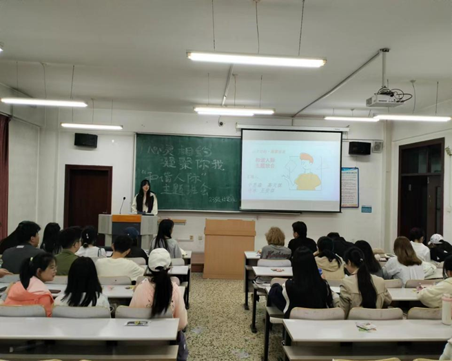 2023级图书馆学班心理班会于4月26日在汇文楼168开展。李天赫同学组织同学们积极地提出相关人际关系的问题与困扰,同学们通过彼此分享交流一起寻找解决对策,收获颇多。
