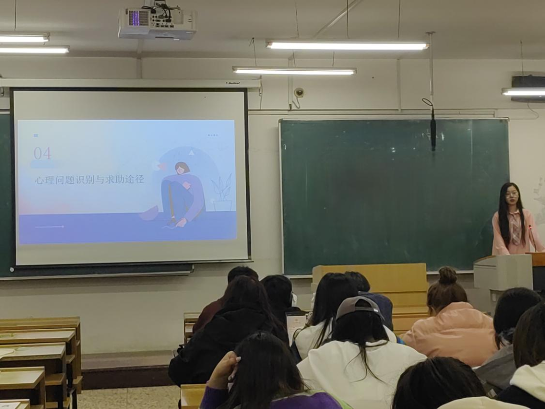 首先,郑美琪同学带领同学们了解了大学生心理健康的相关知识,让同学们知道了什么是心理健康以及如何保持心理健康,列举出同学们可能面临的一些心理健康问题,并为同学们提供了调节心理状态的方法。