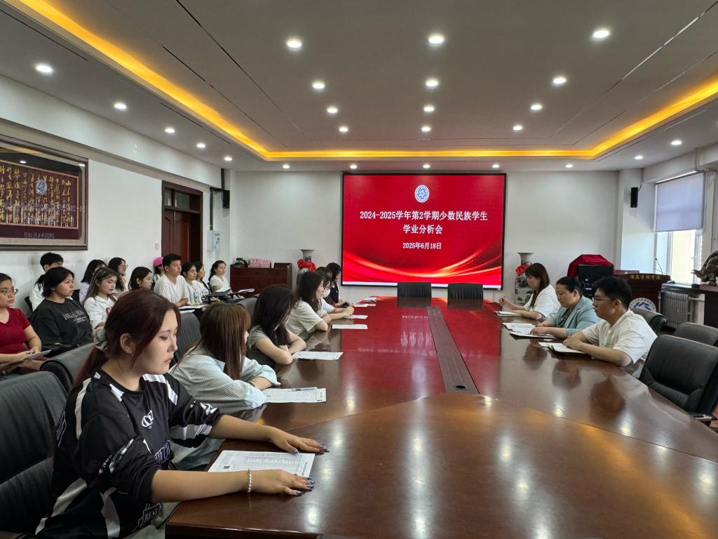 为全面了解少数民族学生学业情况,助力学生成长成才,2025年6月18日,华体会官方网页版于汇文楼834室组织开展2024-2025学年第2学期少数民族学生学业分析会。华体会官方网页版党委副书记赵丽明、2024级本科思想政治辅导员郭曦萌、2022级本科思想政治辅导员刘越以及全体少数民族学生参会。