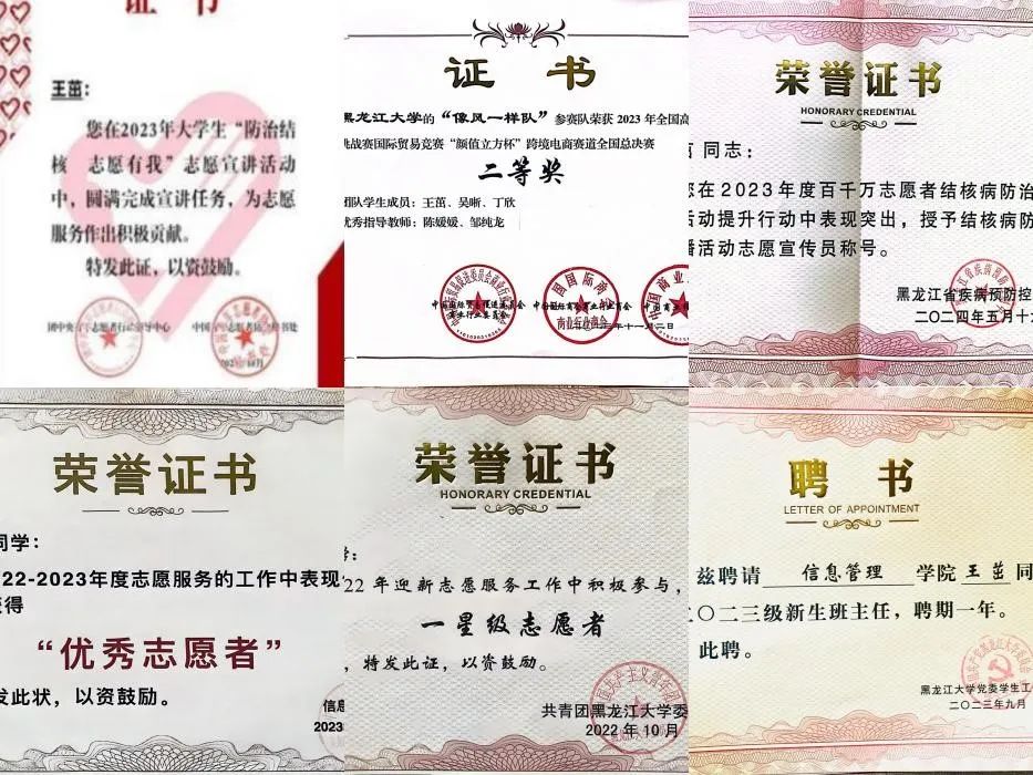 王茁,女,中共预备党员,黑龙江大学华体会官方网页版电子商务专业一班学生。在校期间曾任院第十二届青年志愿者协会主席、院2023级新生班主任、班级组织委员。曾获2023 年全国高校商业精英挑战赛国际贸易“颜值立方杯”跨境电商赛道国家二等奖、2024年大学生创新大赛省级项目、2023年百千万志愿者结核病防治知识传播活动优秀志愿宣传员、院级优秀志愿者等荣誉称号。现已签约厦门安踏服饰有限公司。