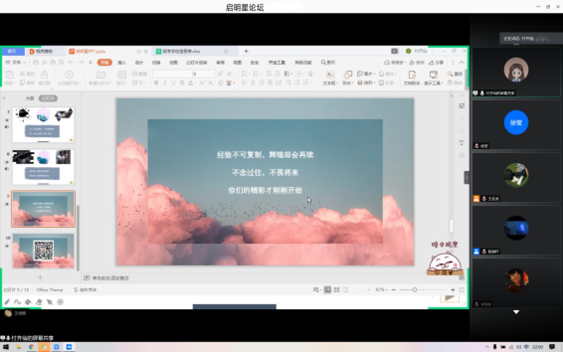 活动接近尾声,主持人再一次对学长学姐的宝贵分享表示感谢,并鼓励同学们在学长学姐的成功中学习经验,要时刻保持一颗坚定的心,相信自己,相信未来。