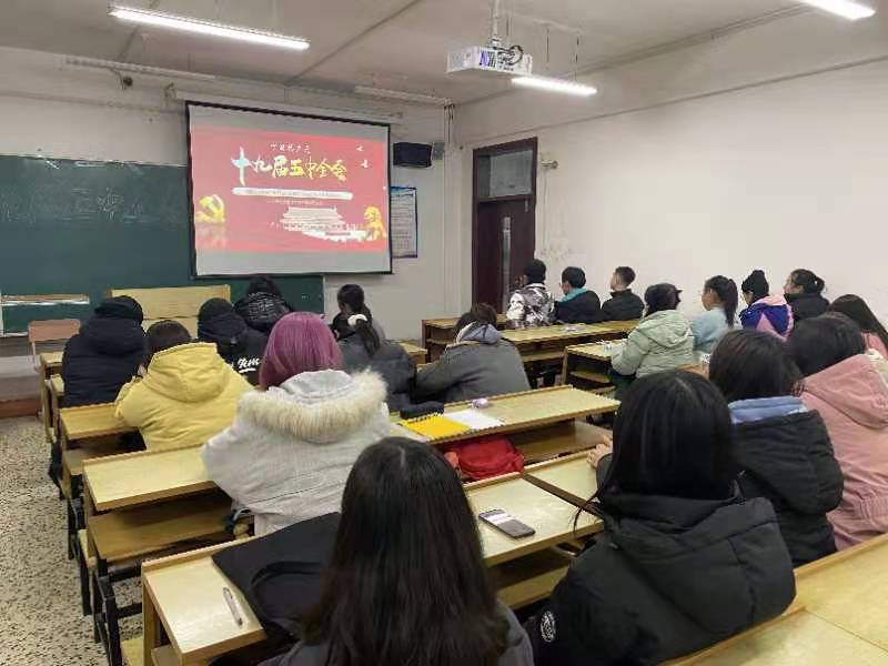 活动伊始,各班级团支书向班级同学们讲解了党的十九届五中全会的主要内容,带领同学们共同分析理解党的十九届五中全会精神,引导同学们认清新发展格局,主动作为,积极行动,把思想统一到全会精神上来,把力量凝聚到落实全会确定的各项目标任务上来。各团支部围绕党的十九届五中全会内容,带领同学们详细了解我国“十四五”规划和二〇三五年远景目标,我国发展的指导方针、主要目标、重点任务,鼓励同学们切实提高适应新发展阶段、贯彻新发展理念、构建新发展格局的能力和水平,真正做到学深悟透做实。