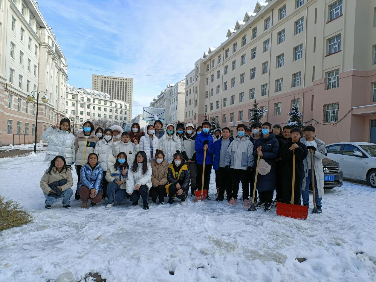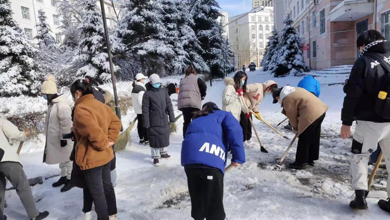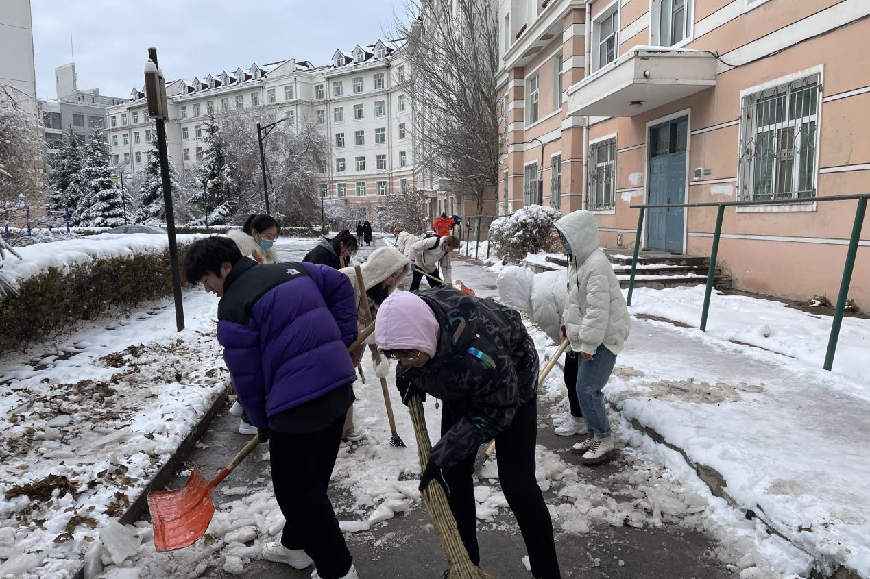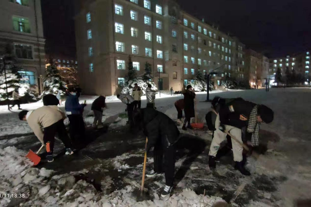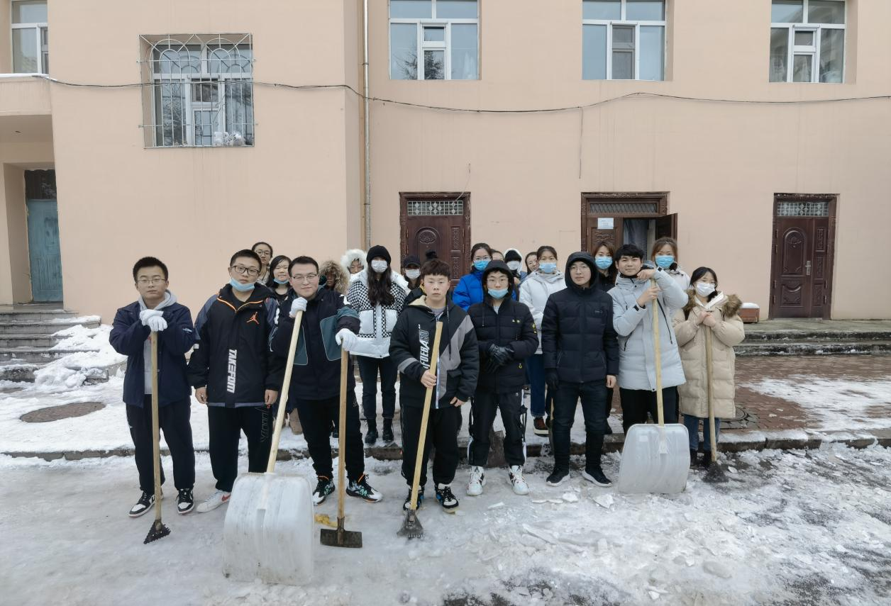 在这次清雪活动中,同学们的感情在劳动中升温,尽管天冷、路滑,大家一直没有离开清雪现场,从扫雪初一直坚持到扫雪净为止,充分体现了成员们的强烈责任感以及团队精神。所有人心往一处想,劲往一处使,在大家不断的努力下,终于完成了工作,为全校师生清扫出一条干净的道路。