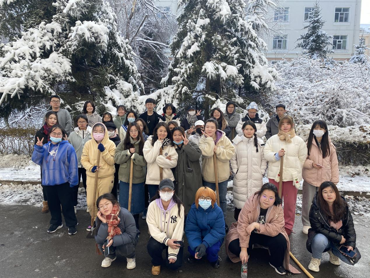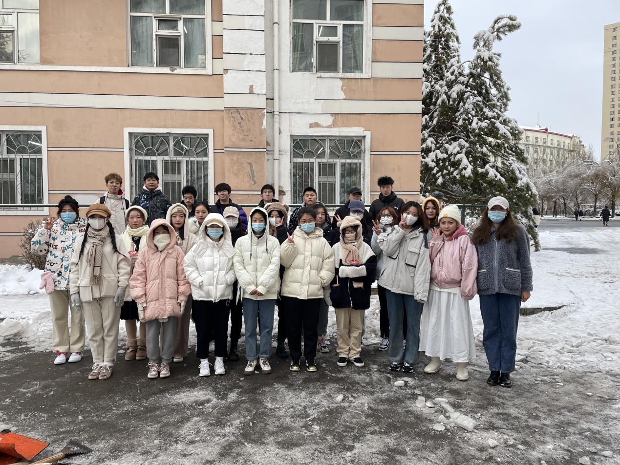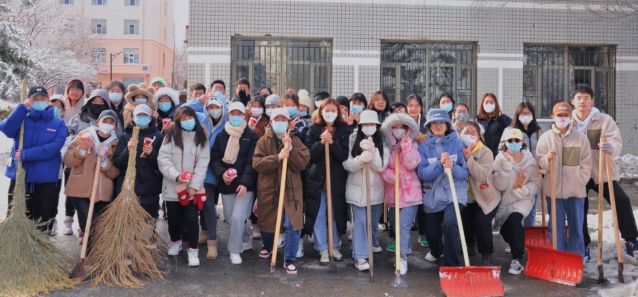 为了保证全校师生的安全出行,保证道路畅通,增强班级体的责任感和凝聚力,提高大家的身体素质,信息管理学院2021级新生开展扫雪活动。