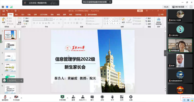 紧接着,黄丽霞院长从华体会(中国)及特色、本科教学、专业建设情况、学生工作取得的主要成绩及学院特色等方面向新生家长进行了详细介绍。随后,王硕老师向新生家长解读了黑龙江大学的学生管理规定,并针对学生注册、请假、违纪处分、学业预警制度等学生入学后的注意事项进行详细说明。