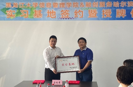 最后,黄丽霞院长与融创服务集团华北大区哈尔滨分公司人力行政负责人顾博特签订校企合作协议,马海群书记与融创服务集团华北大区哈尔滨分公司总经理刘树荣参与授牌仪式。