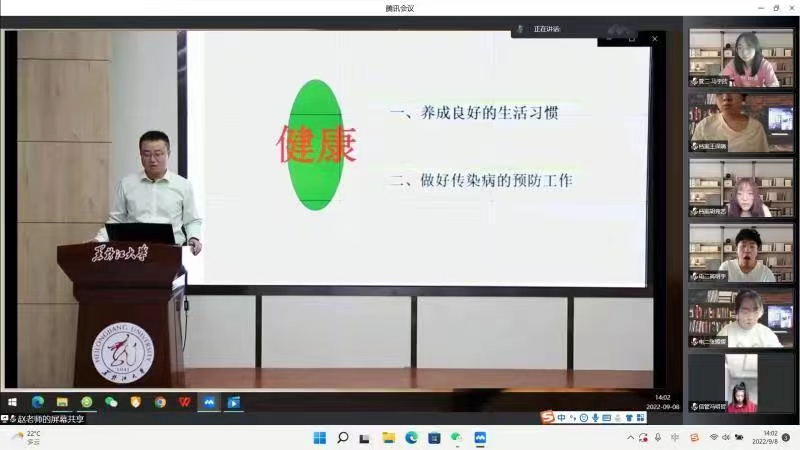 为进一步提升2022级新生们的自我保护意识,引导同学们关注身体健康,提高疾病预防意识,华体会官方网页版于2022年9月8日14:00通过腾讯会议线上开展身体健康与疾病预防讲座。本次讲座由李鸿翼老师担任主讲人,华体会官方网页版团委副书记、2022级辅导员王硕老师和全体新生参与本次讲座。