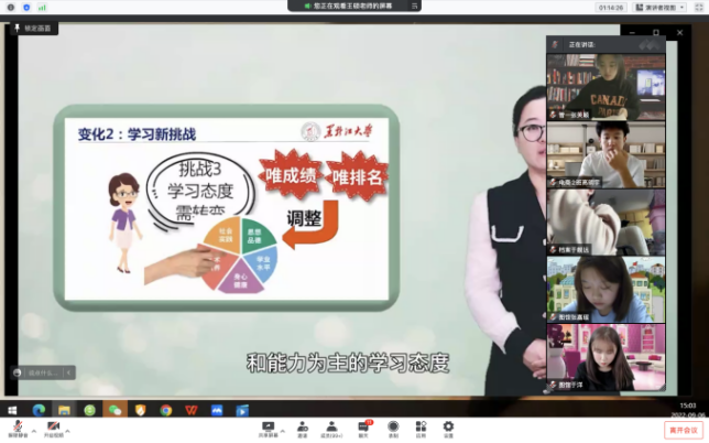 为加强新生心理健康教育,华体会官方网页版于2022年9月6日14:00通过腾讯会议线上开展2022级新生入学教育---心理健康教育讲座。本次会议由华体会官方网页版团委副书记,2022级新生辅导员王硕老师主持,黑龙江大学心理健康教育中心尹静老师为主讲人。