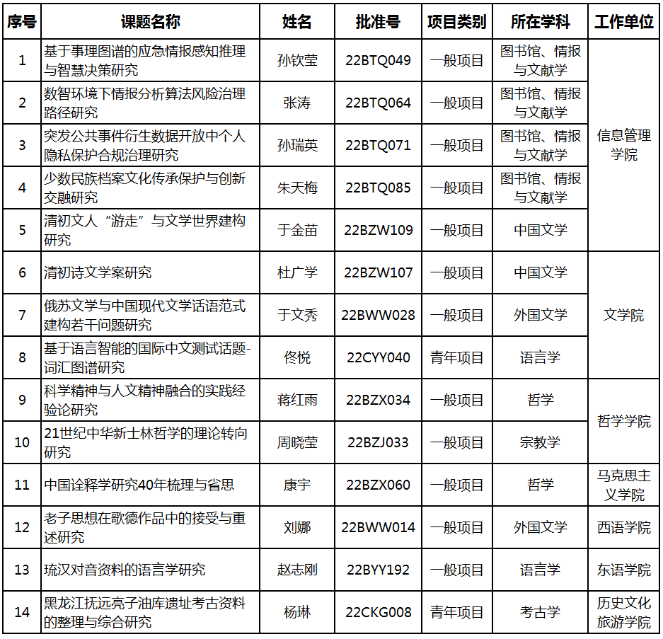 黑龙江大学2022年国家社会科学基金项目立项名单