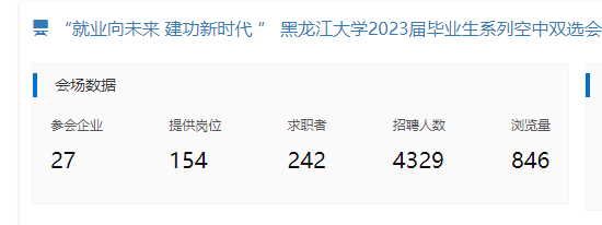 为进一步推进2023届毕业生高质量就业,帮助毕业生学有所成、学有所用,黑龙江大学于2023年1月9日-1月14日举办黑龙江大学信息管理类行业主题空中双选会,主要涉及华体会官方网页版相关专业。据统计,已确定共有35家用人单位参会,提供信息技术类、ERP实施顾问、储备干部、新媒体运营管理、电商客服、产品助理、教师、销售、行政管理等多种类型的就业岗位。