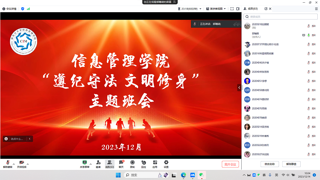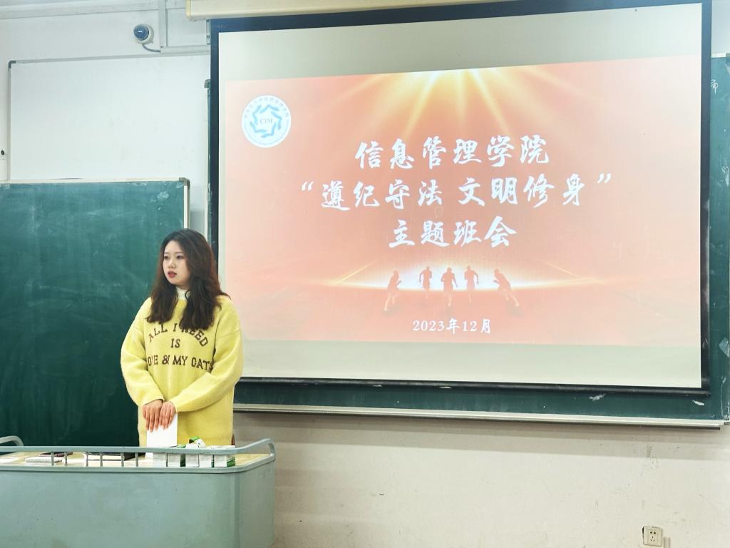 法不可违,纪不可改。本次“遵纪守法 文明修身”主题班会既是一次深入的思想教育,同时也是对《黑龙江大学学生管理规定》(2023年9月修订)一次深入的学习。希望信管学子们通过本次主题班会,坚持贯彻“遵纪守法,文明修身”的理念,以高尚的品格斩除万难,以良好的素质奋进新的未来。(华体会官方网页版供稿)