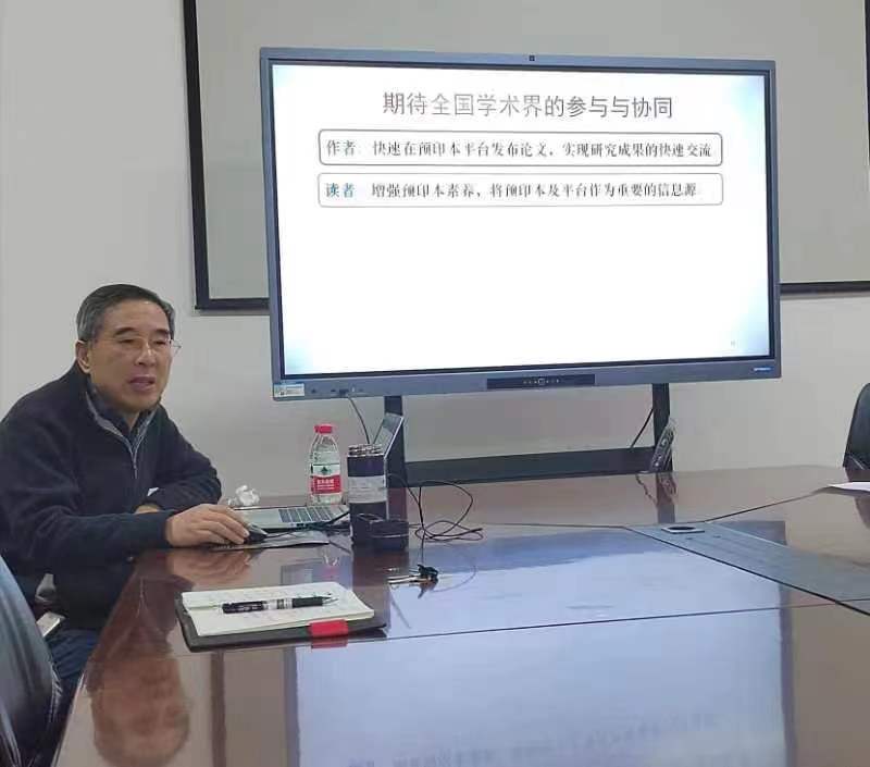 作为国内呼吁预印本学术交流方式的知名学者,初景利教授从“什么是预印本?什么是预印本平台?”“预印本平台与学术交流模式”“构建新型学术交流生态系统”三个方面向与会师生介绍了预印本与预印本平台相关内容。他首先回顾了预印本方式的由来及其在国外学术交流活动中应用现状,特别对预印本与预印本平台的定位进行了详细的描述。他指出预印本是作者在提交期刊出版前未经严格同行评议的手稿,通常通过预印本平台在最短的时间内以开放获取的形式发布,为作者获得成果的网络首发权,为学术交流系统提供最新、最快速的传播与利用渠道,而预印本平台正是预印本得以传播与交流中的核心系统。其次,初景利教授详细介绍了中国科学院科技论文预发布平台ChinaXiv。再次,初景利教授围绕预印本平台与期刊出版的关系阐释了预印本在推进学术交流、成果发表与科研评价方面的作用,呼吁学界要关注预印本平台,善于使用平台获取第一手科研成果。最后,初景利教授指出不能用论文和期刊出版的标准要求预印本和预印本平台。预印本平台与期刊出版的定位、模式、目标和战略都很不相同。预印本平台是开放获取和开放科学不可或缺的组成部分,与期刊出版、学术会议、新媒体共同构成学术交流系统的主体。