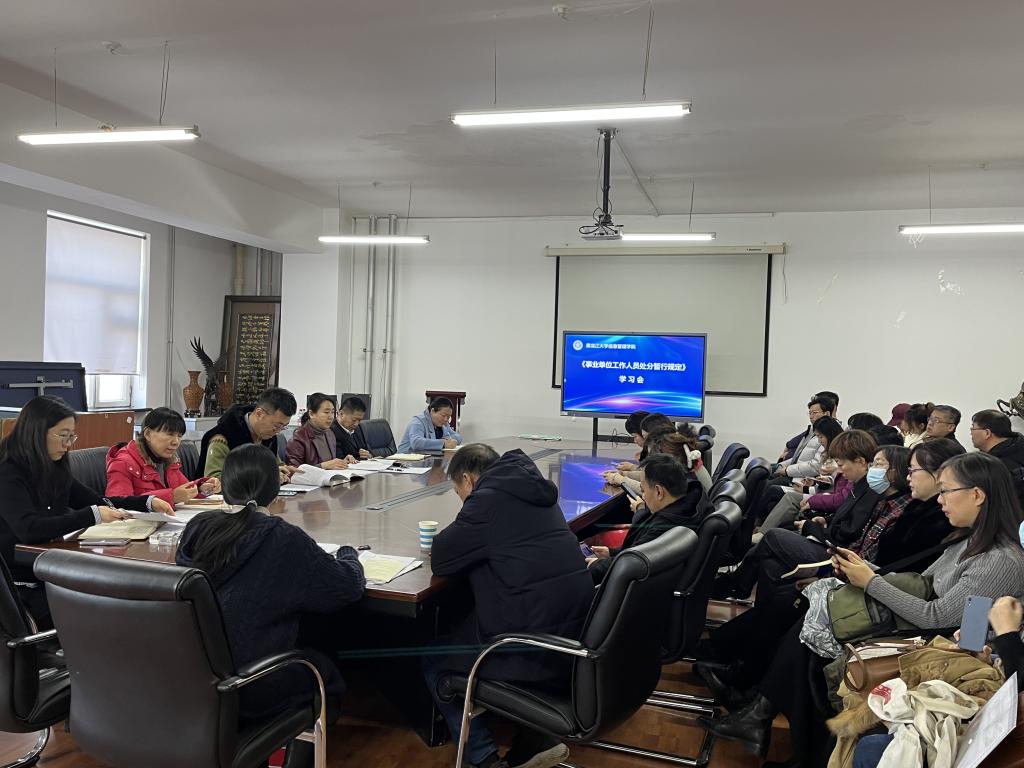 为规范学院教职员工行为,进一步加强学院教职员工依法履职能力,按照学校要求,华体会官方网页版于12月27日下午在学院会议室召开《事业单位工作人员处分规定》专题学习会。本次会议由华体会官方网页版党委书记刘荫梅领学,全院教职员工参加。