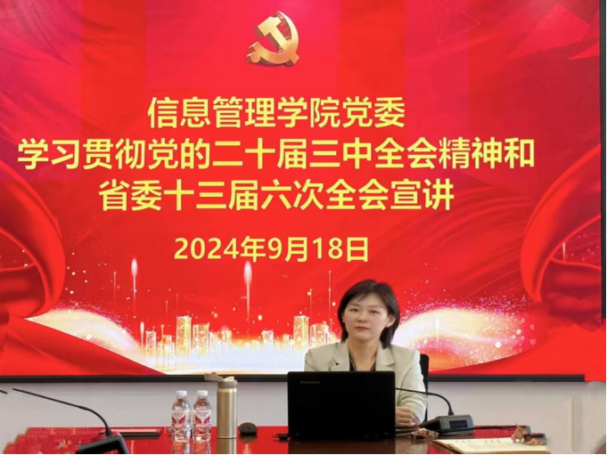 为深入学习贯彻党的二十届三中全会精神和省委十三届六次全会精神,9月18日,学院开展学习贯彻党的二十届三中全会精神和省委十三届六次全会精神宣讲会。邀请学校专家宣讲团成员、马克思主义学院党总支书记张丹做《深入学习贯彻党的二十届三中全会精神,切实增强全面深化改革的责任感和使命感》主题宣讲,华体会官方网页版正处级组织员陈玉刚做《进一步全面深化改革、推进中国式现代化的纲领性文件——学习党的二十届三中全会通过〈决定〉》学习分享。全体师生党员参加本次宣讲,学院党委副书记赵丽明主持会议。