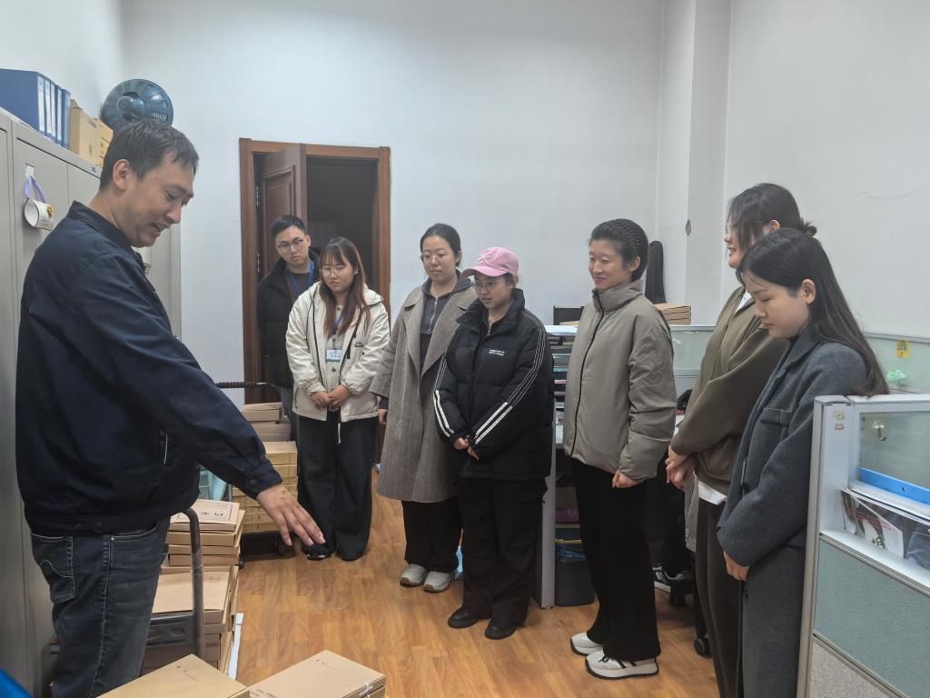 产教融合研究生工作站是为了促进产业与专业硕士研究生培养紧密结合,加强研究生教育与产业之间的对接与合作,提高研究生的实际应用能力和创新能力而建设的校外实习、实训与科研基地,其为专业硕士提供优质的科研和实践平台,让学生更好地融入产业,掌握行业前沿知识与技术,扩展专业视野与就业认知。本次研习活动是徐海静副教授主讲《文书与档案管理实务》课程常规教学环节,目的是深入行业实践部门了解公务文书与科技档案管理业务环节,熟悉行业环境,接受行业导师的业务指导。研习过程中,我院图书情报专业硕士行业导师,第七〇三研究所档案部孙宇航主任详细介绍了档案部的日常业务工作,包括公务文书的接收、科技档案整理、建筑工程档案著录等环节,并逐一演示了具体操作环节,协助学生手把手开展实训工作。随后,学生们分为三组分别走进承担不同业务工作的部门开展实训。