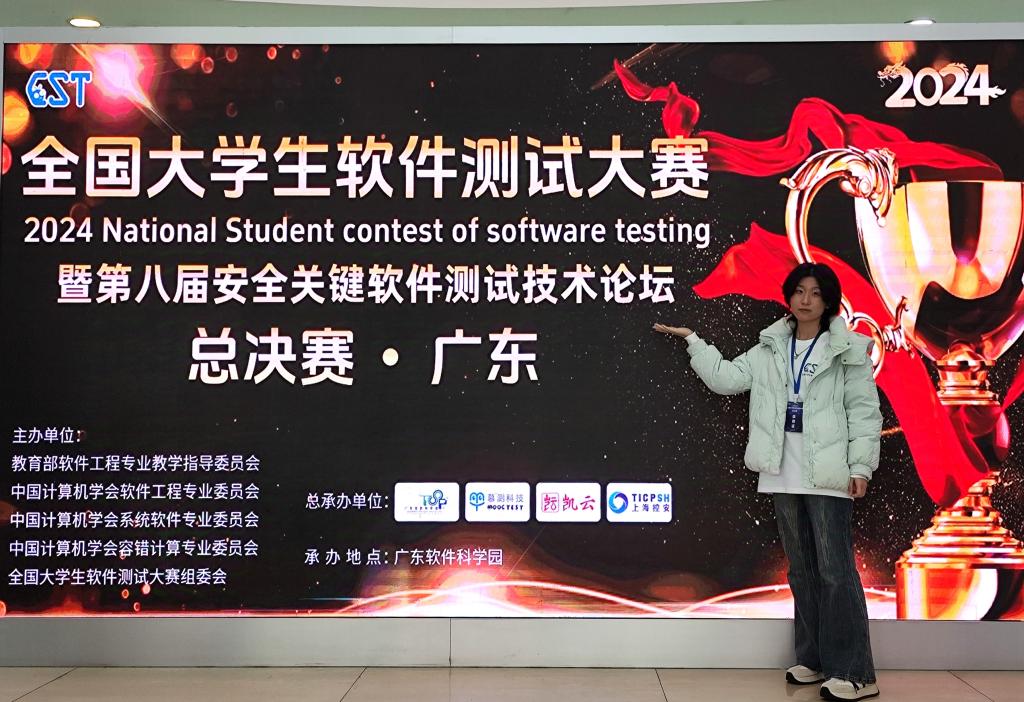 2024年11月29日-12月1日,全国大学生软件测试大赛全国总决赛在广州市广东软件科技园举行。本次大赛由教育部软件工程专业教学指导委员会、中国计算机学会软件工程专业委员会、中国计算机学会系统软件专业委员会、中国计算机学会容错计算专业委员会、全国大学生软件测试大赛组委会主办。我院2023级图书情报专业硕士田茹同学经过前期省赛的选拔进入到本次大赛“嵌入式个人赛”决赛,在总决赛中她发挥出色,获得92分的评价分,取得国赛三等奖的佳绩。