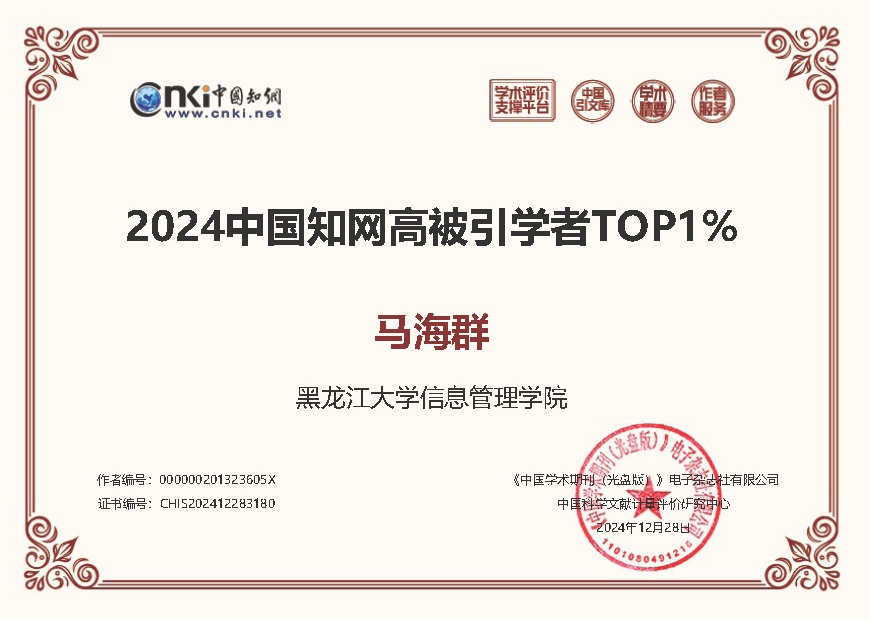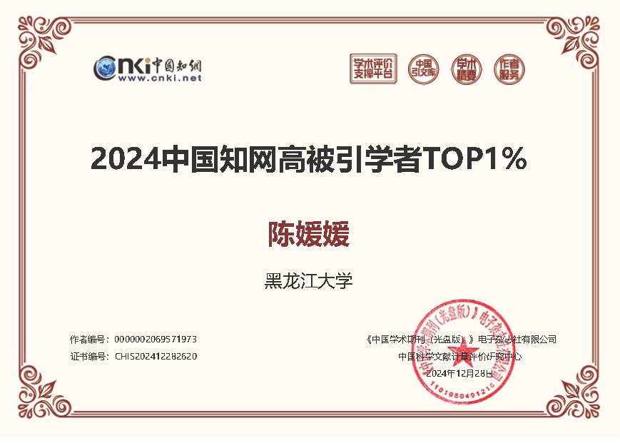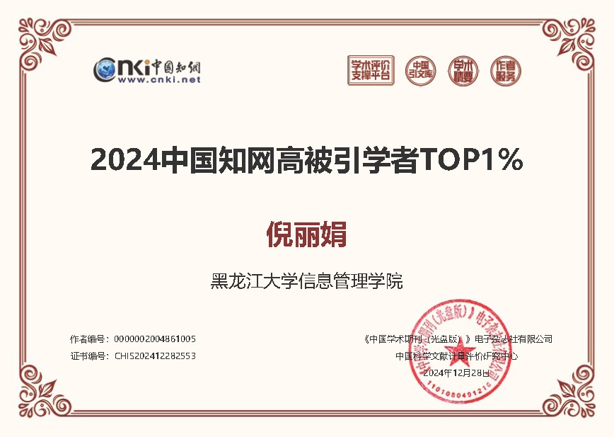 据统计,我院共有7位教师进入2024中国知网高被引学者榜单TOP1%,分别是陈媛媛、姜鑫、马海群、倪丽娟、任越、孙瑞英、张涛;5位教师进入2024中国知网高被引学者榜单TOP5%,分别是迟玉琢、蒋永福、王德庄、赵丽梅、邹纯龙。