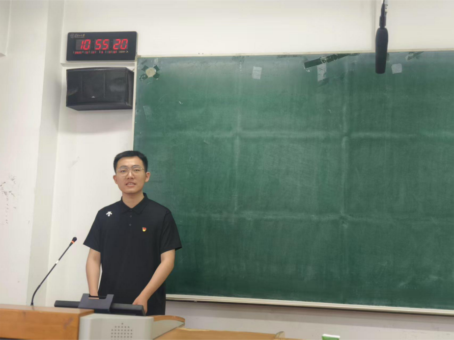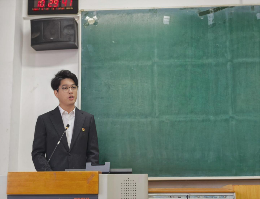 随后,政府管理学院李建飞同学以“青春在志愿实践中闪光”为主题,分享他的志愿经历。从第一次在福利院参与志愿活动时的触动与青涩,到前往西南地区支教时的坚定与成熟,他呼吁同学们提升自身本领,发扬奉献精神,到祖国需要的地方发光发热。