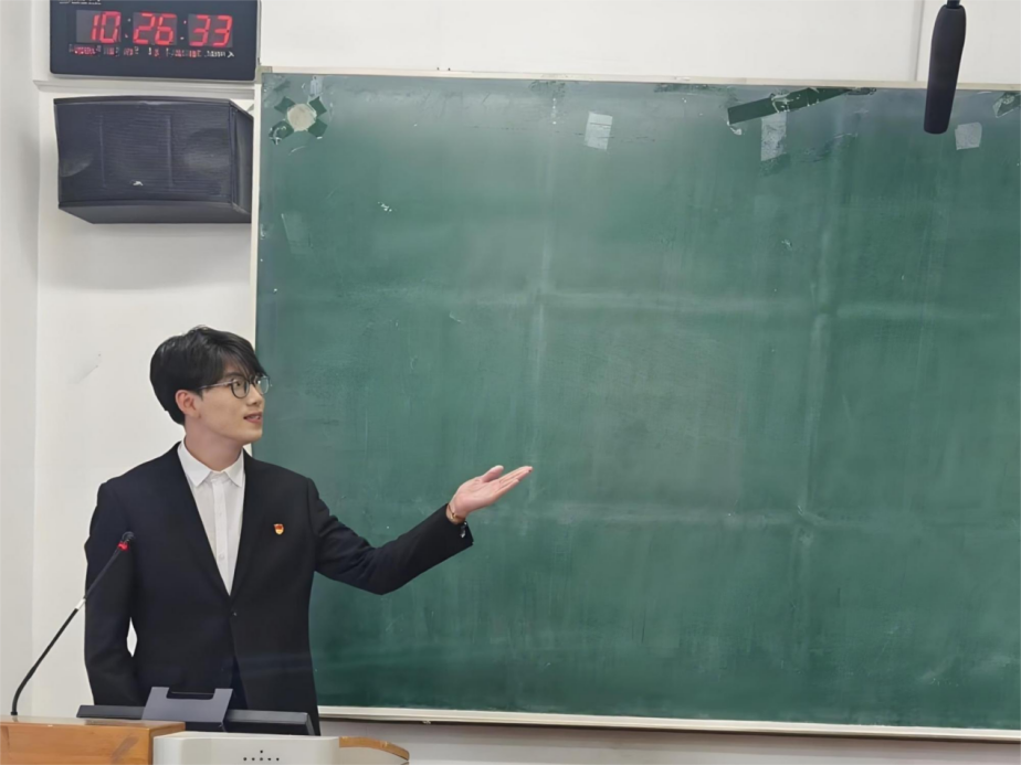 最后,法学院李明泽同学以“薪火相传普法路,青春奋进新征程”为主题,讲述榜样的力量。他传承前辈意志,远赴牡丹江开展普法支教,在法治教育中呵护青少年成长,于宣传活动中让法律知识深入人心。他用专业所长回应社会法治需求,以实际行动诠释服务人民的信念,让普法精神在青年接力中焕发活力。