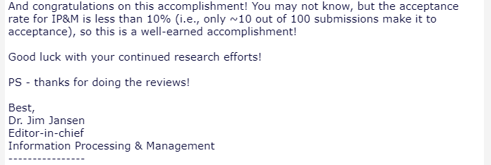 Information Processing & Management的投稿接受率(来自编辑的接收邮件):