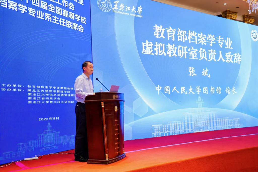 2025年8月9日,教育部档案学专业虚拟教研室工作会暨第三十四届全国高等学校档案学专业系主任联席会在哈尔滨市成功举办。本次会议由教育部档案学专业虚拟教研室、黑龙江大学华体会官方网页版联合主办,黑龙江省档案学会、黑龙江大学信息资源管理研究中心、黑龙江大学数字社会研究院协办。来自全国各高校、各省档案学会和相关单位的80余名代表参会。