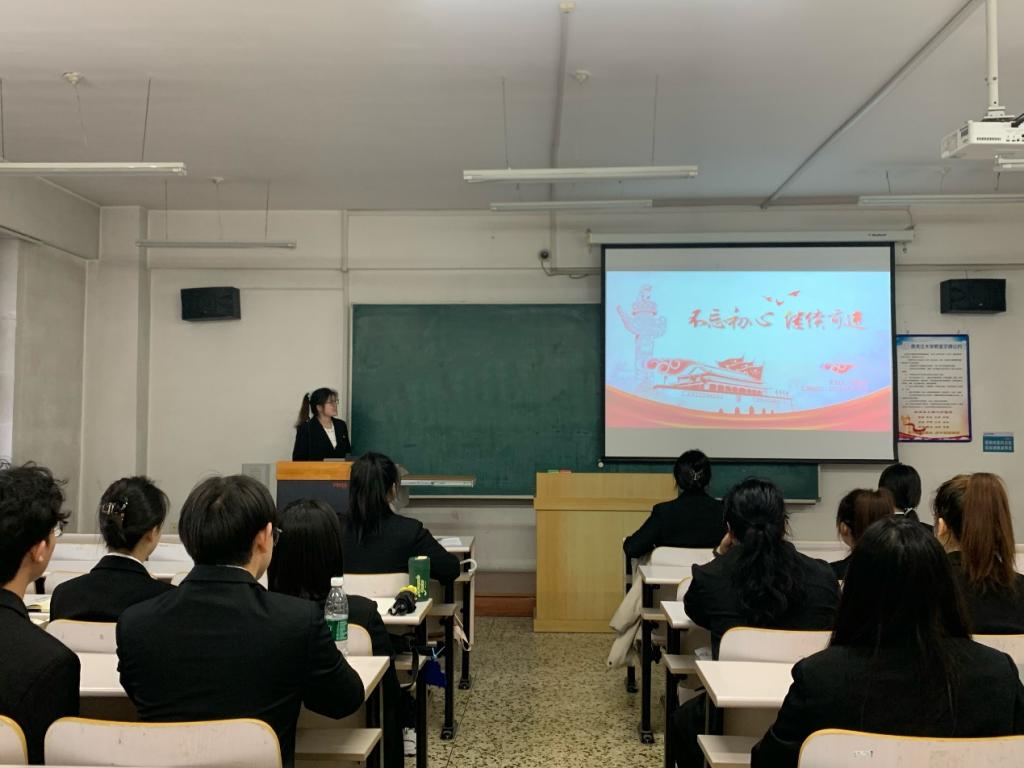华体会官方网页版于5月31日17:00在汇文楼244开展以“不忘初心,继续前进”为主题的典型领学活动,由优秀研究生党员陈彤彤主讲。
