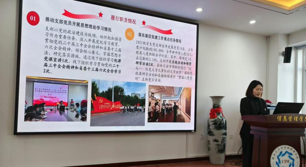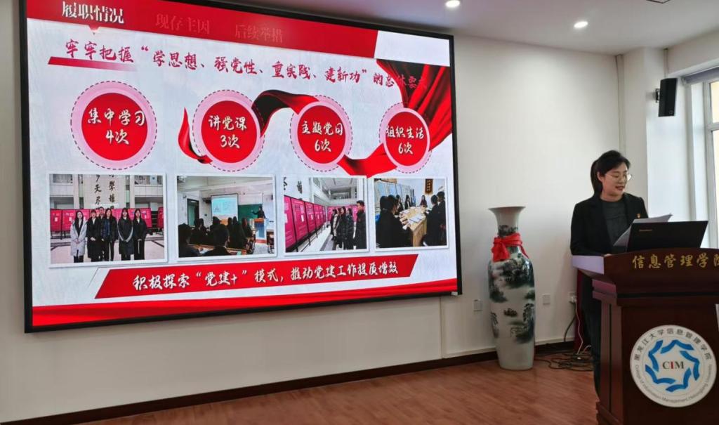 会上,教工党支部书记牛晓宏、本科生党支部书记赵珺男、研究生党支部书记盖禹行等10位党支部书记从深入开展党纪学习教育及学习贯彻党的二十届三中全会精神和省委十三届六次全会精神情况、扎实落实基层党建工作重点任务情况、突出落实基层党建工作责任制和全面从严治党要求情况、突出抓好有关问题整改情况等方面进行现场述职,检视查摆存在的主要问题,根据实际情况剖析原因,并提出下步工作思路和主要措施。